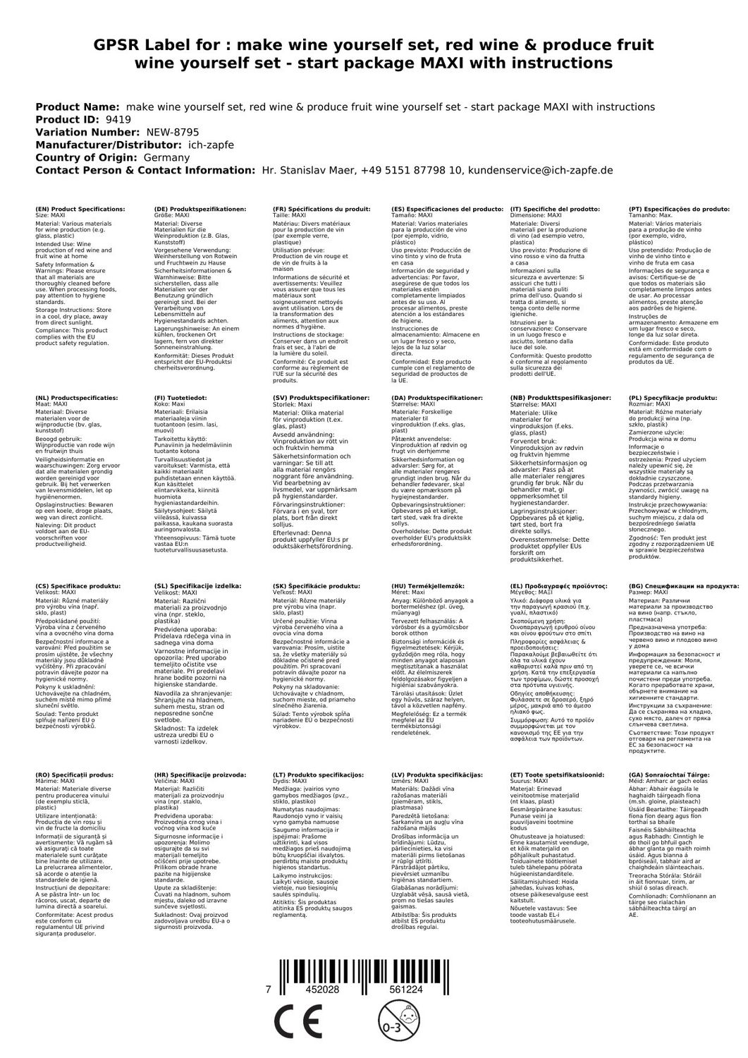 [Paket] Wein selber machen Set - MAXI mit Obstpresse 12 Liter, Anleitung auf Englisch