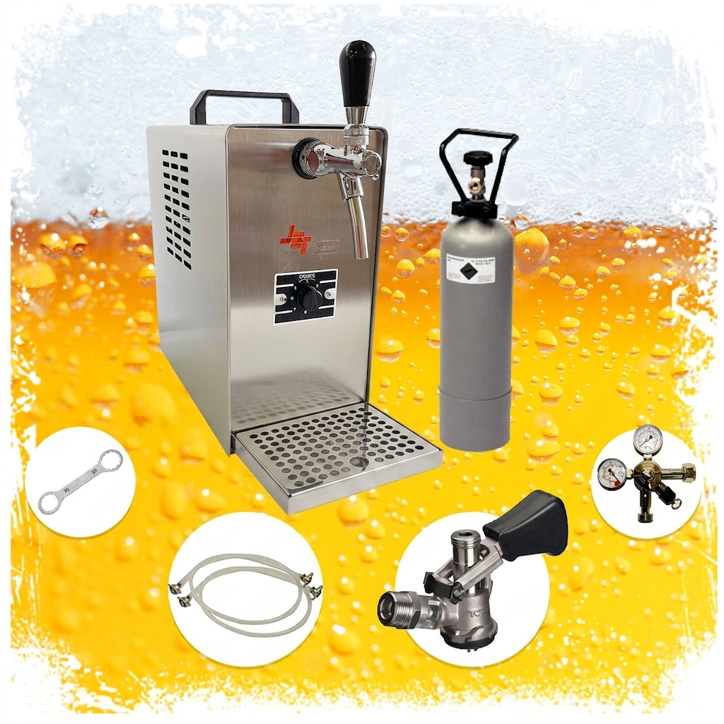 Komplett Set - Zapfanlage, Bierzapfanlage JET 30 Bierkoffer, Durchlaufkühler 1-leitig Trockenkühler, bis zu 35 Liter/h