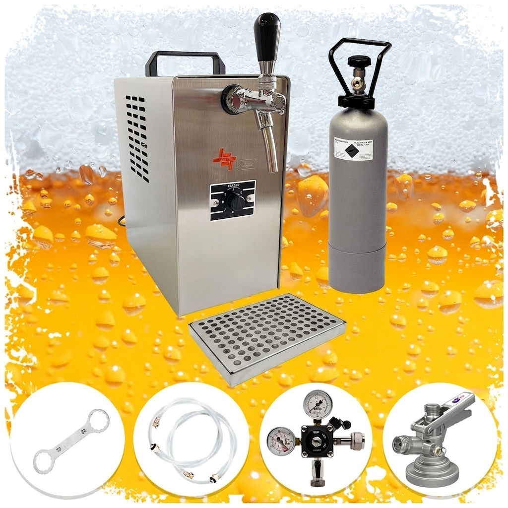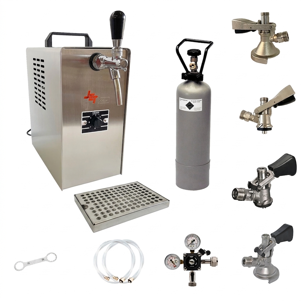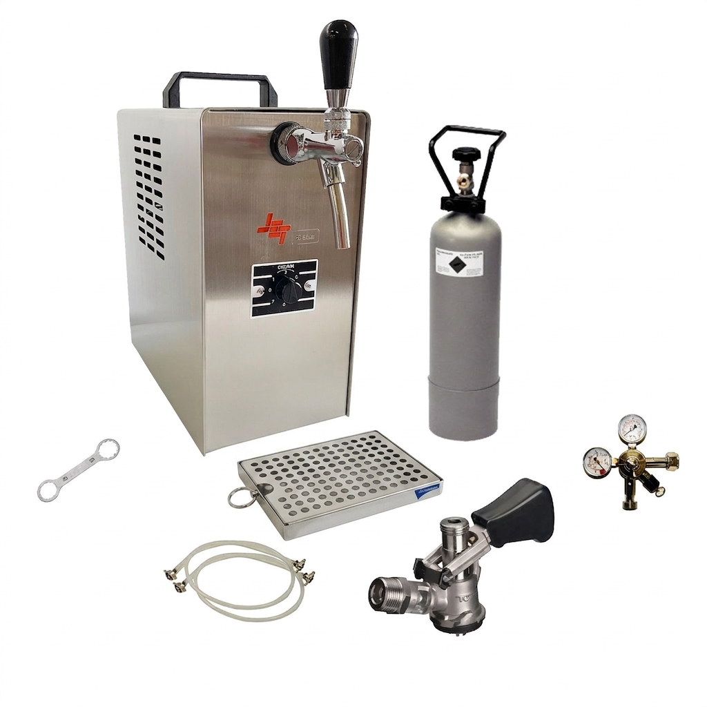Komplett Set - Zapfanlage, Bierzapfanlage JET 30 Bierkoffer, Durchlaufkühler 1-leitig Trockenkühler, bis zu 35 Liter/h