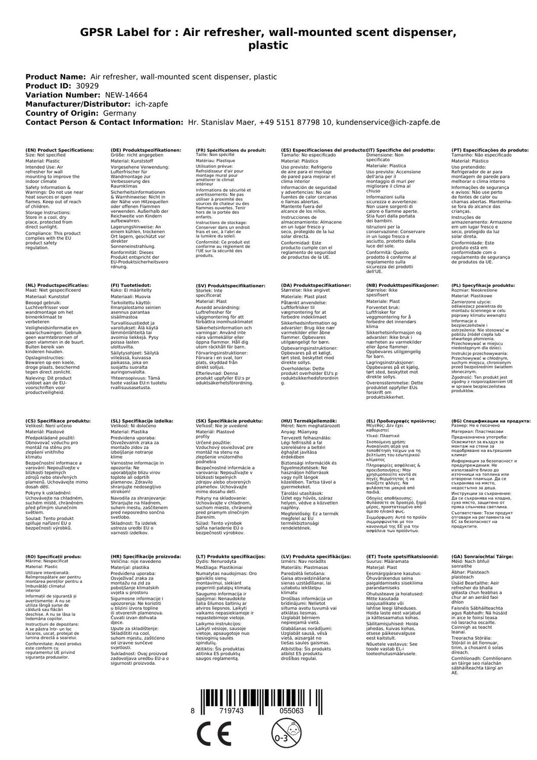 Lufterfrischer, Duftspender für Wandmontage, Kunststoff