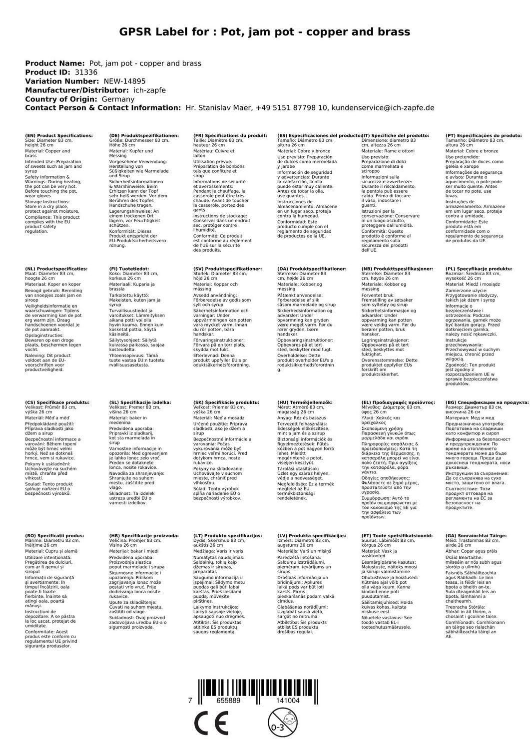 Der Marmeladentopf aus Kupfer und Messing ermöglicht Ihnen die Herstellung von köstlichen Süßigkeiten wie Marmelade und Sirup auf traditionelle Art und Weise. Die antiken Kupfertöpfe verteilen die Wärme schnell und gleichmäßig, was zu einem perfekten Kochergebnis führt. Der Topf ist aus hochwertigem Kupfer gefertigt und hat die perfekte Dicke für eine optimale Wärmeleitung. Die Messinggriffe verleihen dem Topf ein klassisch-elegantes Aussehen. Bevor Sie den Topf verwenden, sollte der Lack entfernt werden, um die Gesundheit nicht zu gefährden. Geeignete Methoden zur Entfernung des Lacks finden Sie im Internet. Zur Erhaltung des Glanzes und der Qualität des Kupfers empfehlen wir folgende Pflegehinweise: Mit dem Marmeladentopf aus Kupfer und Messing wird das Herstellen von Marmelade und Sirup zu einem wahren Vergnügen. Erhalten Sie den ursprünglichen Geschmack wie bei den antiken Zuckerbäckern.Topf, Marmeladentopf - Kupfer und Messing