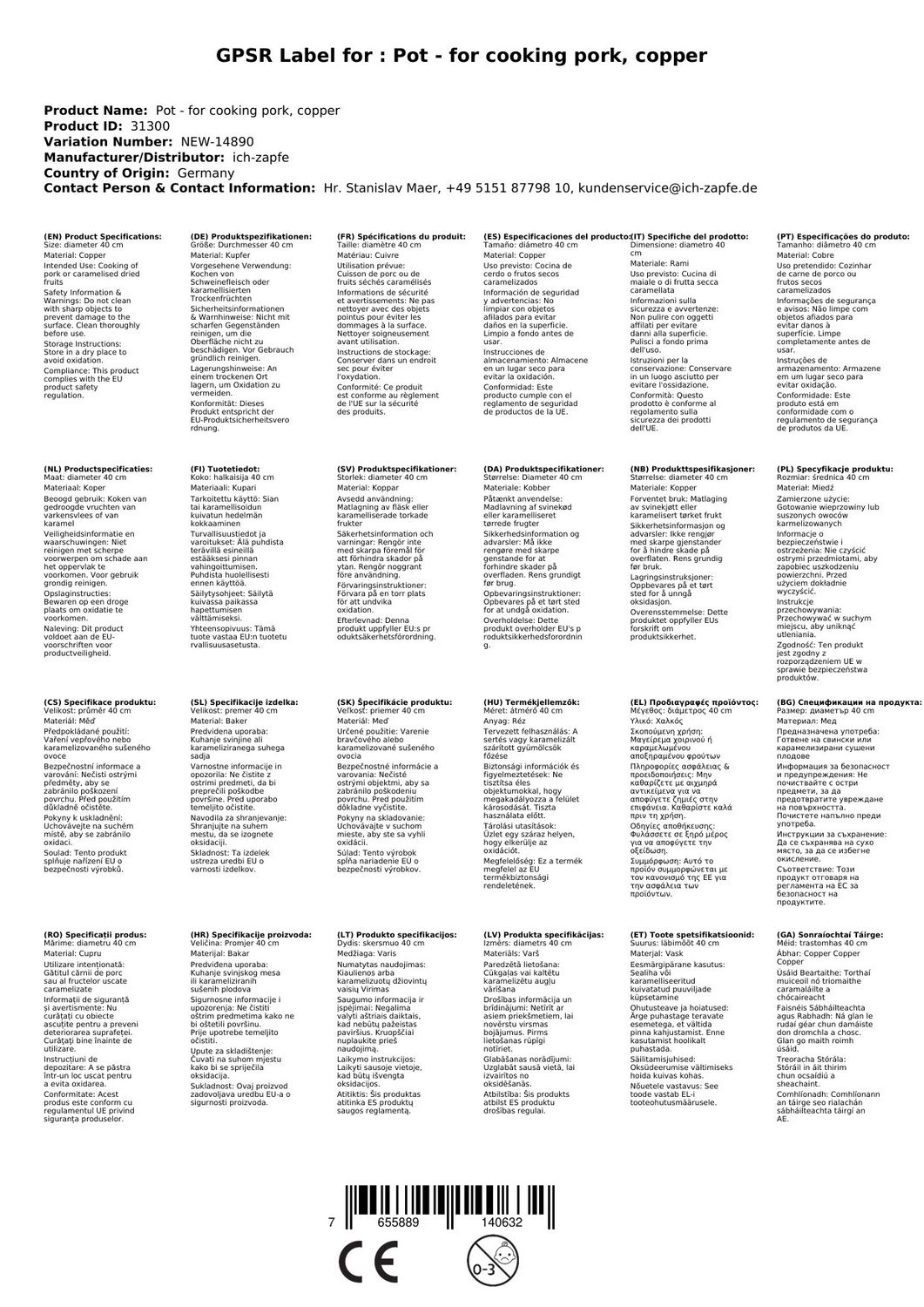 Genießen Sie perfekt gegartes Schweinefleisch oder karamellisierte Trockenfrüchte mit diesem hochwertigen Topf aus Kupfer. Die ausgezeichnete Dicke des Materials sorgt dafür, dass Ihre Speisen perfektioniert werden und das Kupfer schnell und gleichmäßig die Hitze verteilt, um einen charakteristischen Geschmack zu erzielen. Bevor Sie den Topf verwenden, entfernen Sie bitte den Lack des Artikels, um die menschliche Gesundheit zu schützen. Befolgen Sie hierfür die empfohlene Entfernungsmethode. Um die Sauberkeit, den Glanz und die Qualität des Kupfers zu erhalten und ein Vergilben zu vermeiden, empfehlen wir die Reinigungs- und Pflegehinweise zu beachten. Mit diesem Kupfertopf können Sie köstliche und charakteristische Geschmacksgerichte wie Schweinefleisch und karamellisierte Trockenfrüchte perfekt zubereiten und genießen. Holen Sie sich dieses professionelle Kochgeschirr und verwandeln Sie Ihre Küche in eine professionelle Kochumgebung. Keine Küche ist komplett ohne einen Kupfertopf. Kaufen Sie jetzt den Topf zum Kochen von Schweinefleisch aus hochwertigem Kupfer, um köstliche Gerichte zu kreieren und Ihre Gäste zu beeindrucken. Topf - zum Kochen von Schweinefleisch, Kupfer