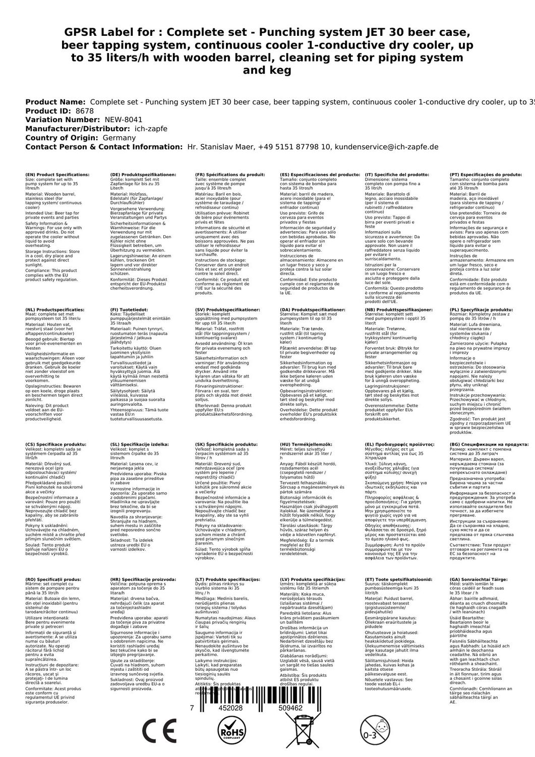 Komplett Set - Zapfanlage JET 30 Bierkoffer, Bierzapfanlage, Durchlaufkühler 1-leitig Trockenkühler, bis zu 35 Liter/h mit Holzfass, Reinigungsset für Zapfanlage und Keg